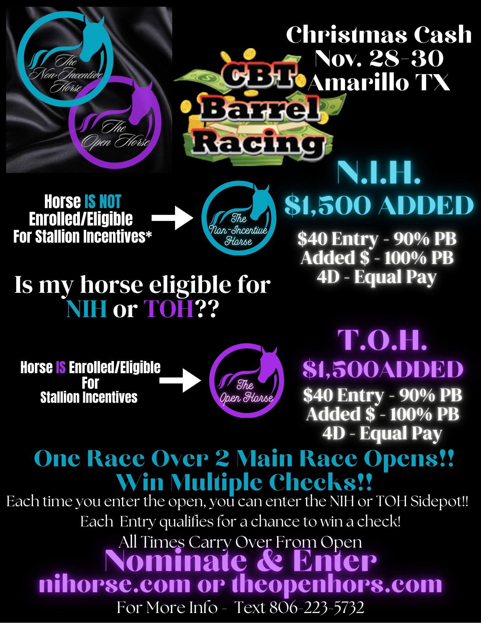 Invitational $2000 added open 5D, presented by Bimeda, with a $750 12 & under incentive sponsored by Palo Duro Glamping. $1000 Classic Equine giftcard drawing offered to all qualified times.